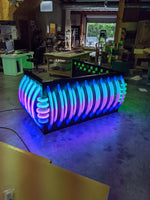 TV Baby is our cutting-edge LED light-up DJ booth that was unveiled at the NAMM Show 2022, designed to be the ultimate centerpiece for any event. This booth comes equipped with a built-in 65" TV. For those who prefer a more streamlined setup, TV Baby is also available as a simplified LED rolling DJ facade without the TV. Packed with features, this DJ booth is built to deliver an exceptional performance while enhancing the visual appeal of any venue. TV baby features access doors behind all of the TV's video ports, and multiple routing ports on the top, bottom, and work deck to allow a multitude of wiring configurations with access to the built in extra wide 10 outlet power strip. TV baby comes with our recommended anti-glare plastic protection cover and matching trim surround. We also offer an optional 2-way mirror panel for the front, but this item is not recommended if unit is frequently transported to and from events. TV Baby can only use one design style for its front, being the recommended anti-glare clear front or 2-way mirror.