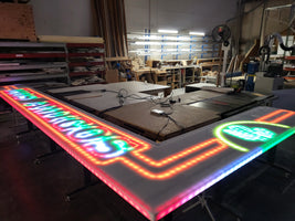 We use our state-of-the-art fabrication shop to bring innovative and imaginative lighting designs to life. Our mission is to make fun items even more exciting with the power of light. We build light-up games, signs, tables, counters, and offer custom design work for restaurants and bars.